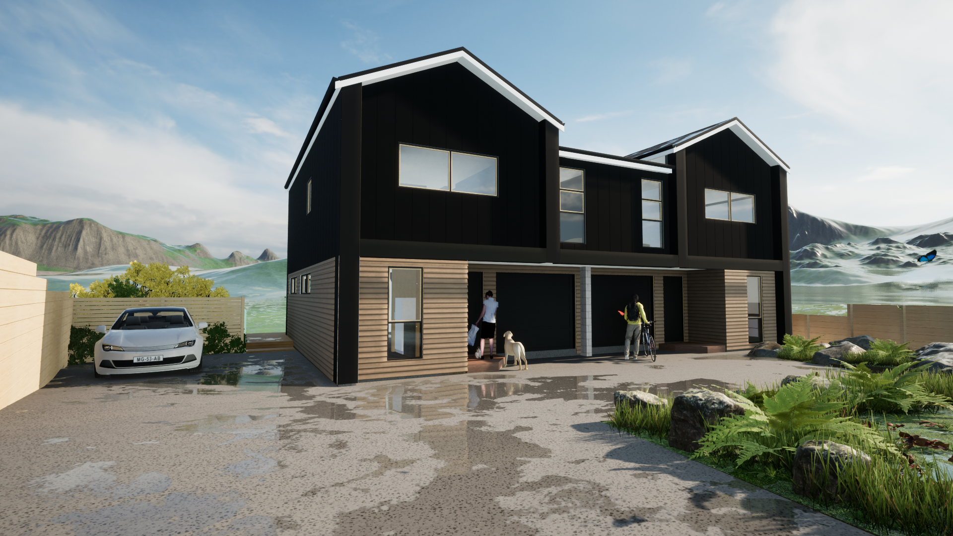Design an inviting two-level duplex home with three bedrooms that combines optimal space utilization with functional layout planning. The ground floor seamlessly integrates an open-plan kitchen, dining, and lounge area, fostering a sense of togetherness. The upper level features three bedrooms, highlighted by a master suite with its ensuite bathroom, accompanied by a family bathroom.